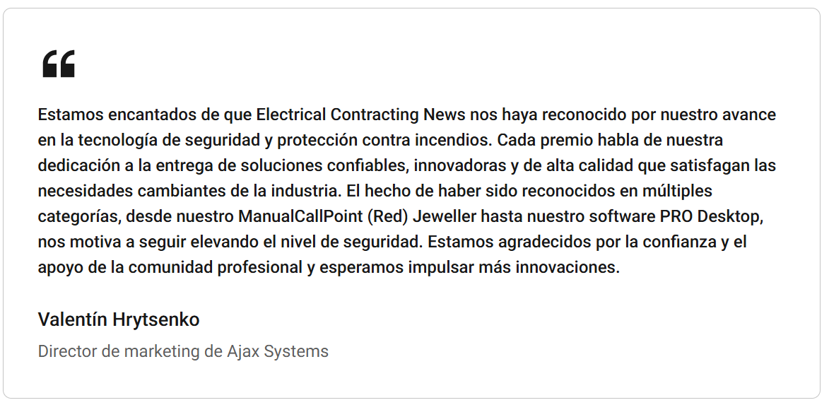 Ajax Systems celebra dos victorias en los premios ECN 2024