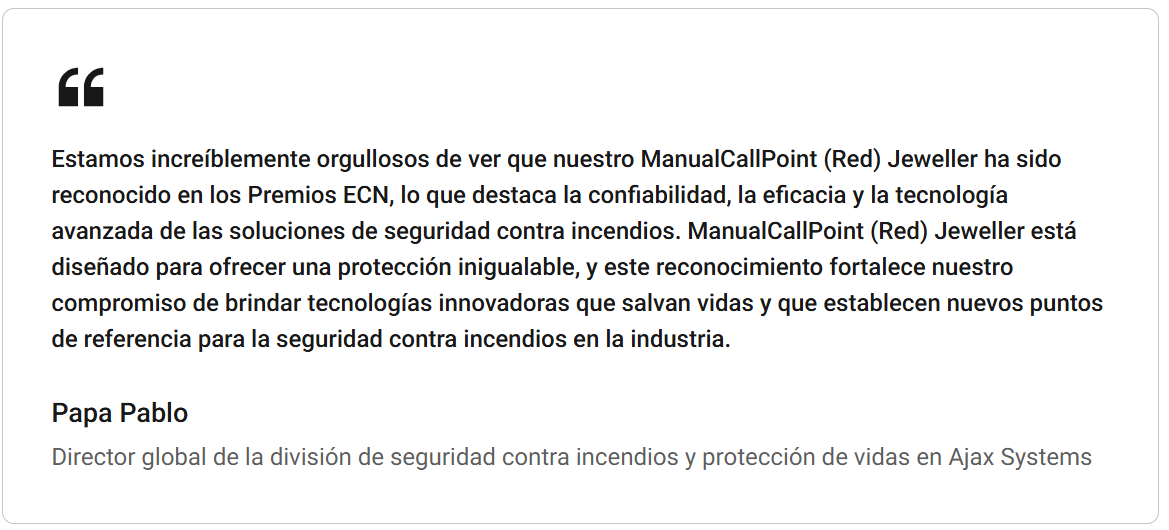 - Producto de seguridad contra incendios del año: ManualCallPoint (Red) Jeweller