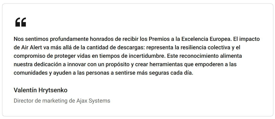 Ajax Systems gana el premio a la excelencia europea 2024 por Air Alert