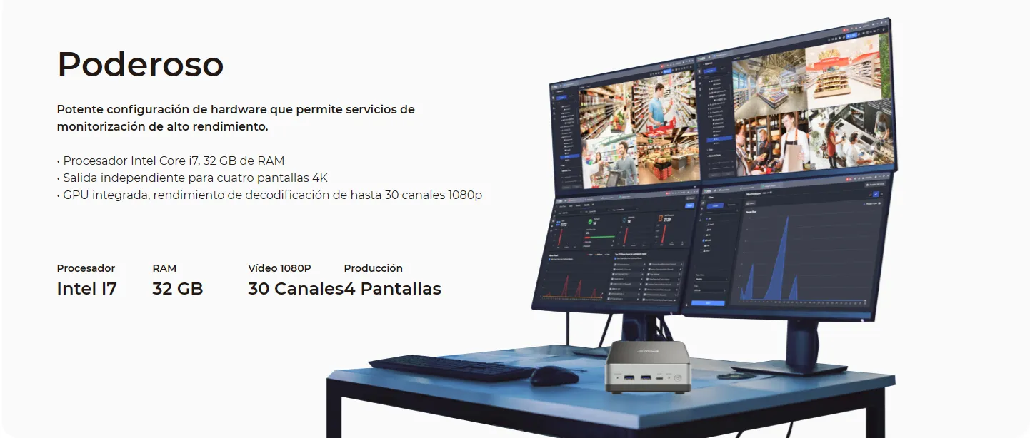 Decodificación de alta eficiencia (hasta 30 canales de video 1080P).