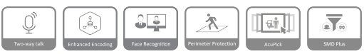 SMD Plus de 32 canales para canales analógicos o SMD de 48 canales por cámara que permite que el dispositivo active alarmas precisas para humanos y vehículos.