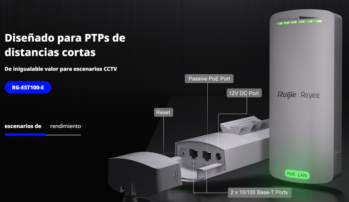 KIT 2 ANTENAS PUNTO A PUNTO 500MTS 2.4 GHZ IP55 RG-EST100-E