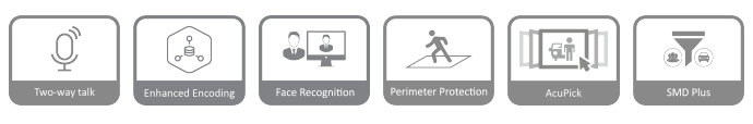 SMD Plus de 8 canales para canales analógicos o SMD de 12 canales por cámara, que permite al dispositivo activar alarmas precisas para personas y vehículos.
